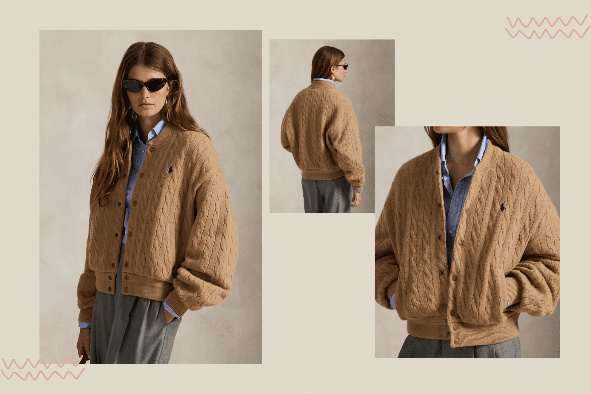 這款飛行外套以經典 Cable-Knit 編織結合棒球領設計,展現休閒中帶點精緻感。落肩剪裁與微寬版型營造隨性輪廓,義大利羊毛與羊絨混紡面料柔軟保暖,穿著舒適而富層次。