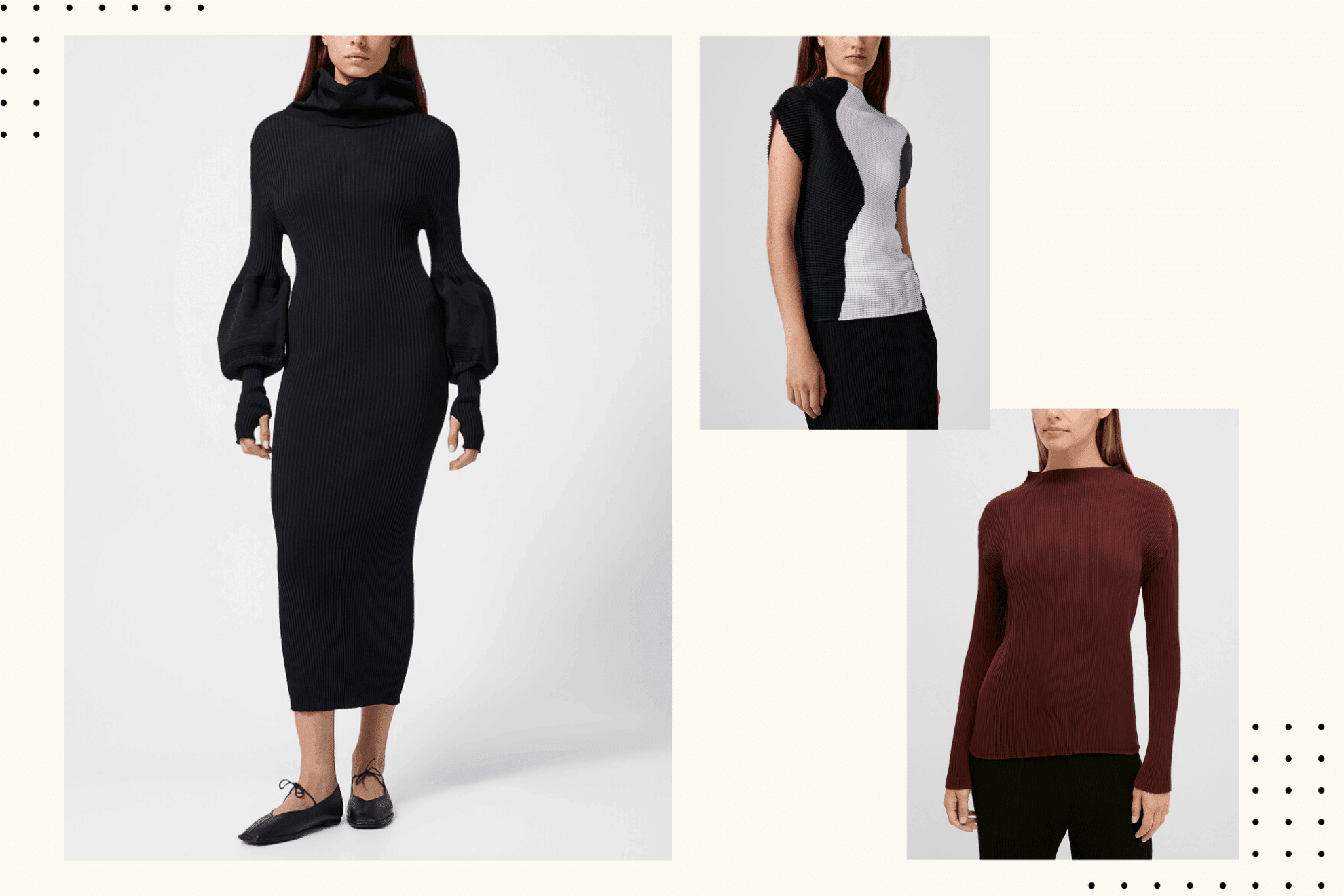 日本設計大師 Issey Miyake 的作品總是介於藝術與服裝之間,以創新摺疊工藝與流動線條聞名。每件服飾都像是可穿著的雕塑,隨著身體律動展現獨特美感,使日常穿著也能成為一種自我表達的藝術體現。