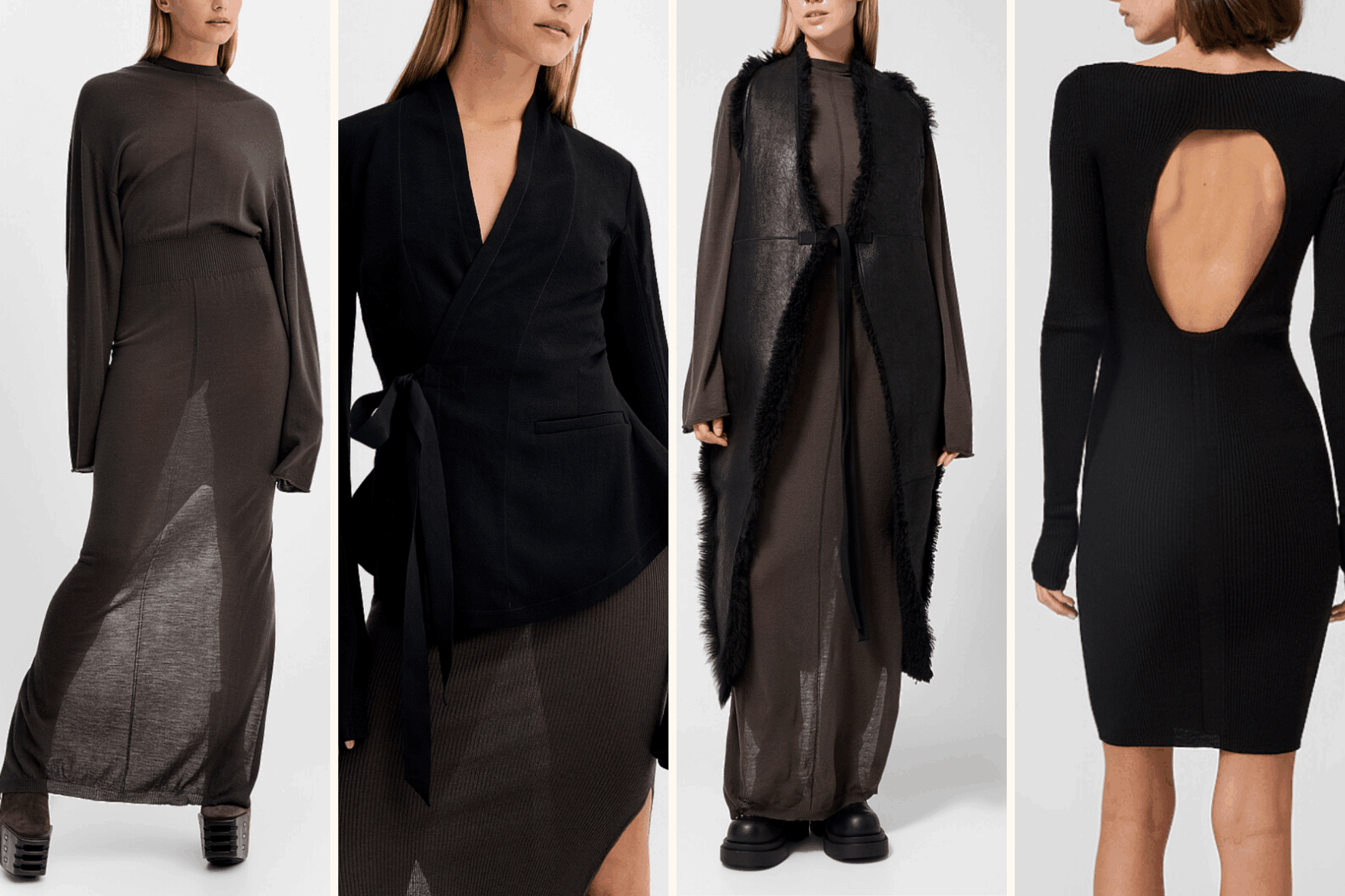 若 Marni 以色彩詮釋時尚的繽紛和玩味,Rick Owens 則以極簡的暗黑美學描繪出另一種力量之美。標誌性的結構剪裁與冷峻輪廓,搭配黑白灰之間的層次變化,讓他的設計在低調中散發張力,展現出截然不同的時尚視角。