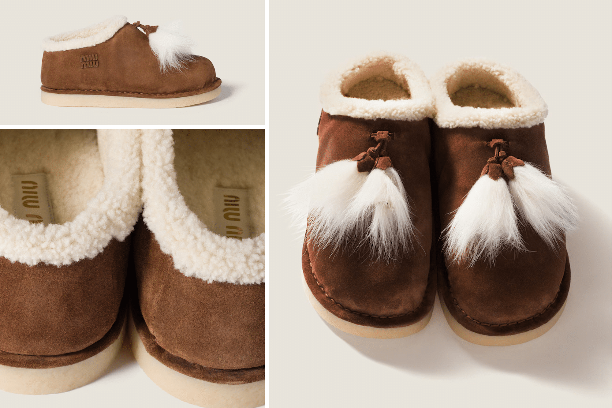 1. Miu Miu – Suede & Shearling Mules (Cocoa Brown)