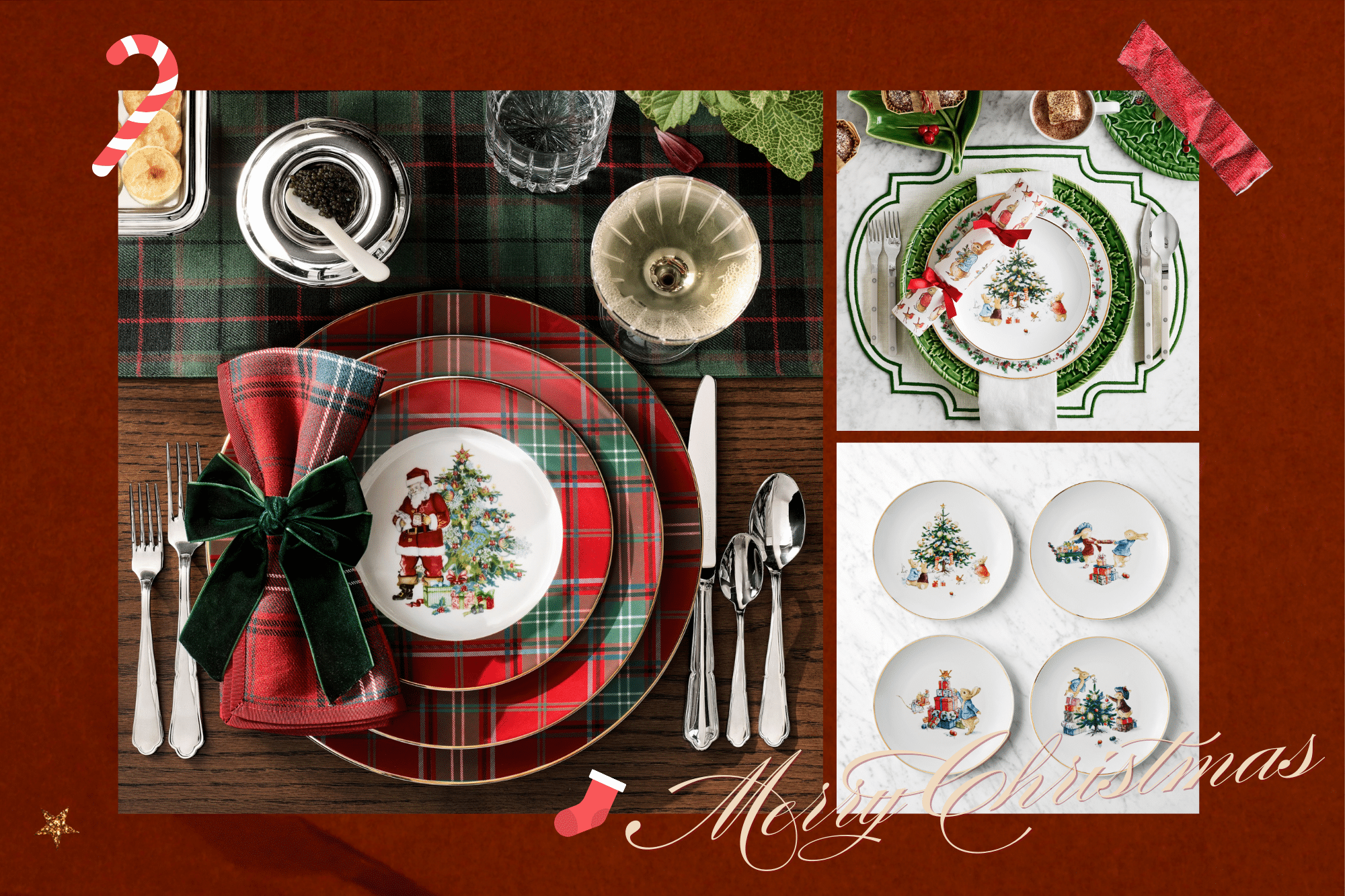 1. Williams Sonoma — Peter Rabbit™ Christmas Salad Plates / Red Tartan Dinner Plates